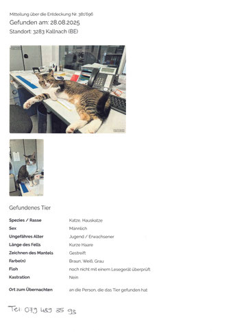 Falls Sie ein Tier finden, melden Sie sich umgehend in unserer Tierarztpraxis.