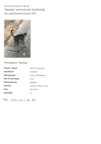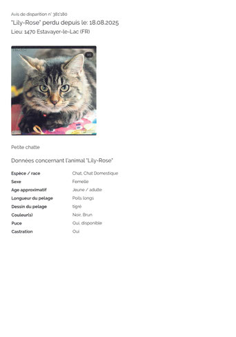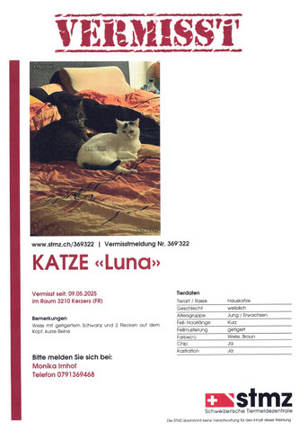 Oder klicken Sie auf das unten stehende Bild, um zu erfahren ob dieses Tier vermisst wird.